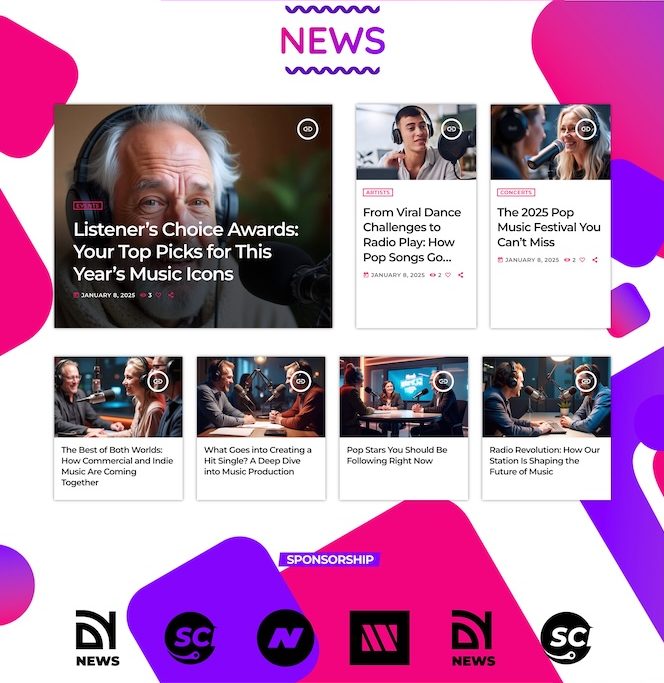 With these new designs, your website can truly reflect the energy of your radio station — bold, interactive, and unforgettable.