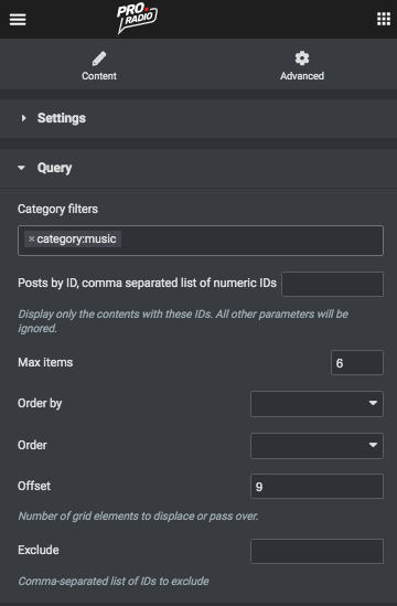 Easily craft your custom query using category selections, ID selection, maximum amount of items and order parameters.