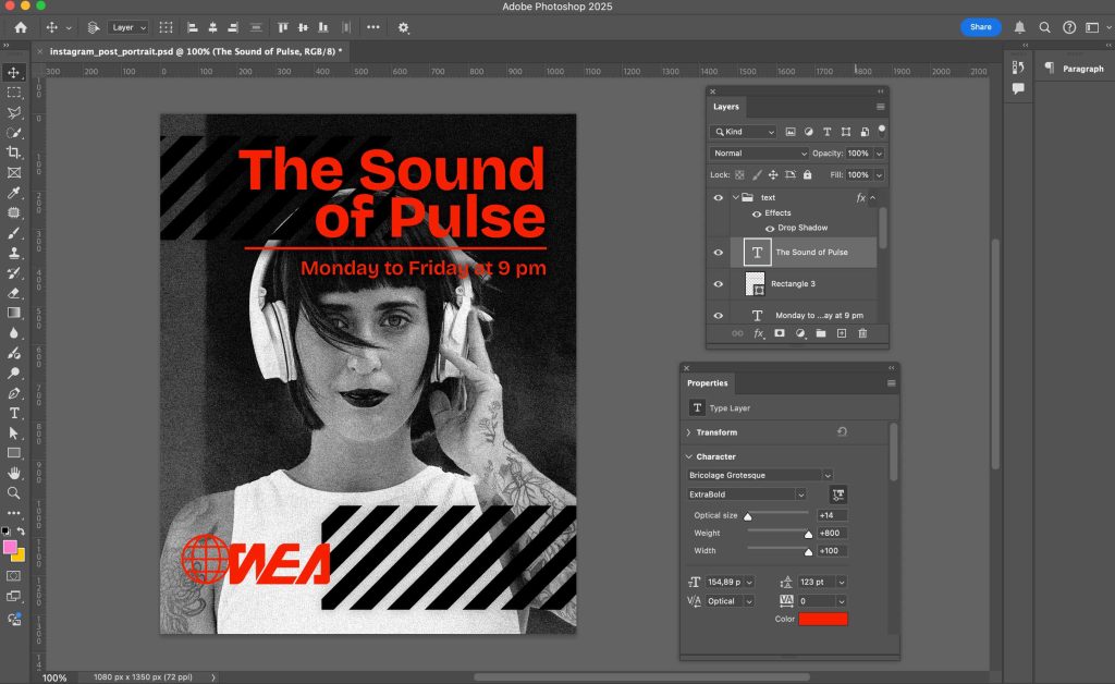 Forget cookie-cutter designs. These templates are built with a bold, gritty, and alternative aesthetic, inspired by underground club flyers, techno warehouse raves, and the raw energy of electronic music culture. Using Bricolage Grotesque, a font that screams attitude, these graphics cut through the noise, ensuring your station’s message hits hard and loud.