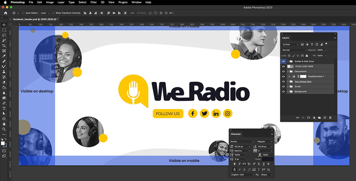 Meet “Sun City Radio” – a collection of 15 stunning Photoshop templates designed to help you create the perfect header, post, and feed for your Facebook, Instagram, Twitter, and YouTube channels. So why wait? Download the latest templates now and give your online presence the makeover it deserves! (the link is at the end of the post!)