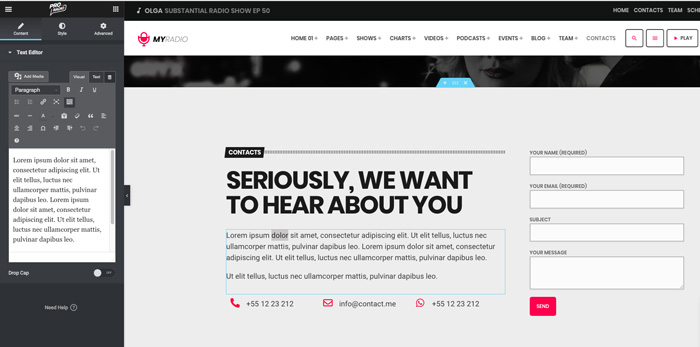Il tema Pro Radio WordPress è compatibile con il potente plugin Contact Form 7, per aggiungere facilmente moduli di contatto illimitati alle tue pagine.