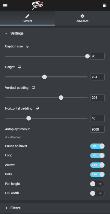 Il widget”slider programmi radio” è un widget automatico per Elementor incluso con il tema WordPress Pro Radio che estrae automaticamente, dalle impostazioni di programmazione correnti, gli spettacoli attuali e imminenti (puoi impostare il numero desiderato). Il suo contenuto viene aggiornato automaticamente ogni 2 minuti.