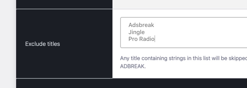 Just enter a string per line, to recognize the titles that shouldn’t be treated as songs and should not be imported or displayed. For instance, if you radio has some jingles named