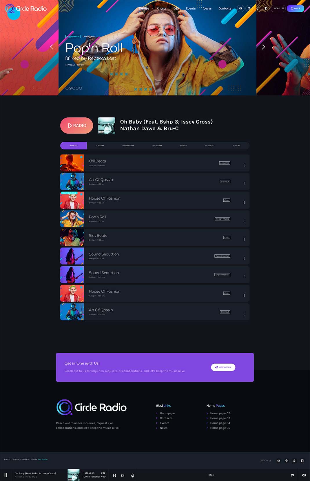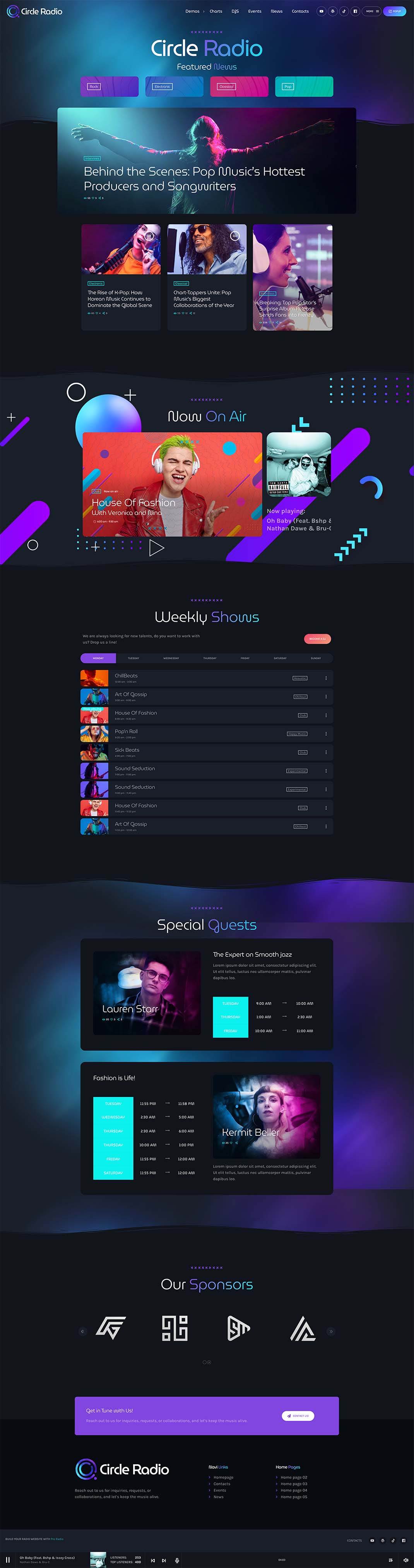 All of the demos also include the classic pages that you would expect from a radio station website, such as a schedule, chart, DJs and presenters, events, blog, and contact page.