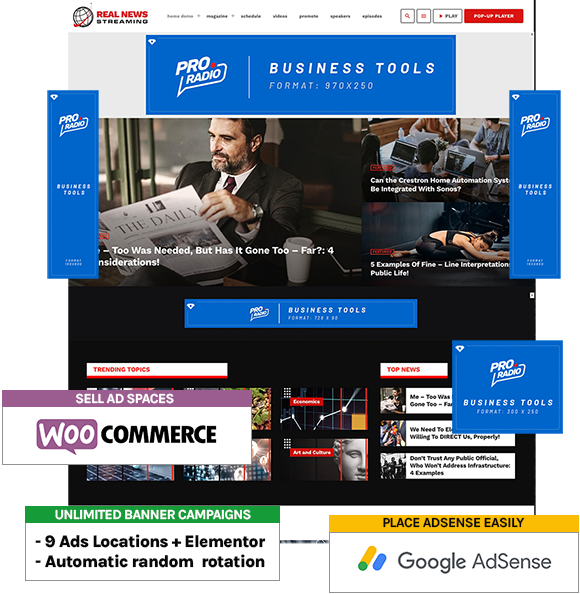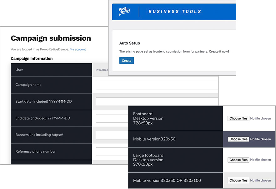 Allow your sponsors to submit ads on their own. Optionally, integrate WooCommerce to sell ad spaces directly from your radio website.