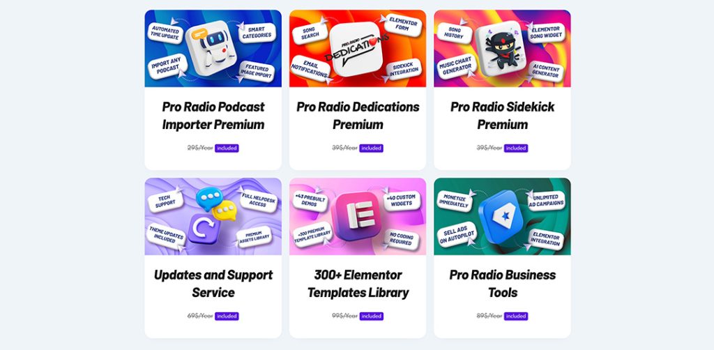 With Pro Radio Plus, you don’t just get the award-winning theme—you get access to a full library of tools, designs, and support that makes running a radio site easier than ever: