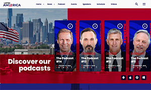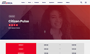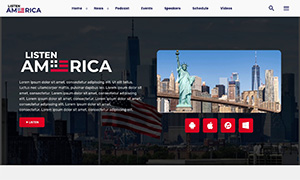 Discover this new political themed radio station website template Listen America: the ultimate radio station design to keep up to date with your radio thanks to this polished and professional style.