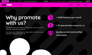 If your station thrives on originality, energy, and creativity, Pink Radio is your perfect fit. Its dynamic, fluid design, coupled with the advanced capabilities of Pro Radio, the ultimate radio website builder, ensures you create an unforgettable online presence that resonates with your audience.