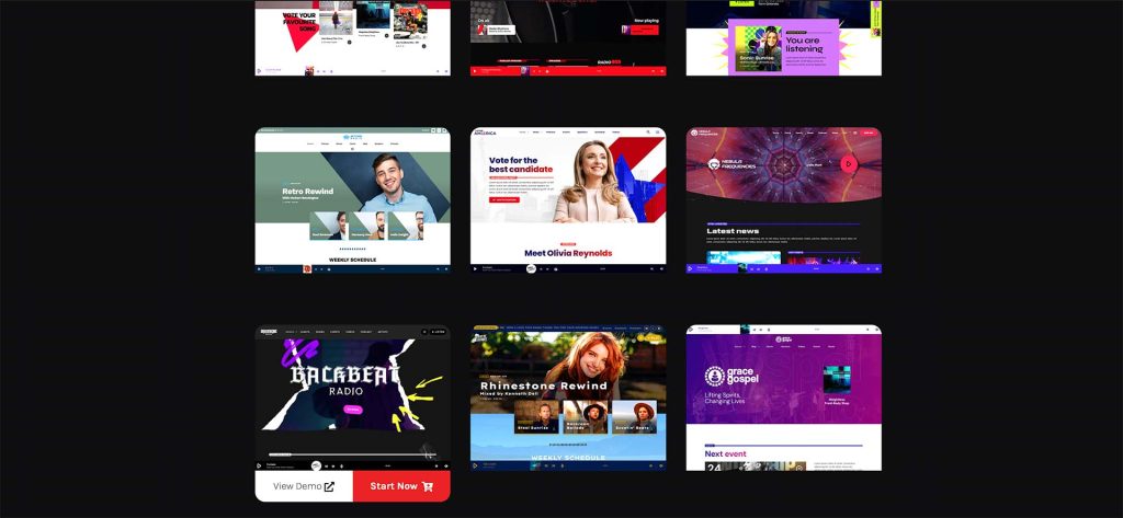 Starting a radio website has never been easier! We are now offering a variety of 30 professionally designed demo templates, specifically crafted for radio stations of all sizes and formats. These templates cater to different aesthetics and functionalities, whether you’re focusing on music, talk shows, or even niche genres. You can choose a design that reflects your station’s personality and have it up and running with just a few clicks.