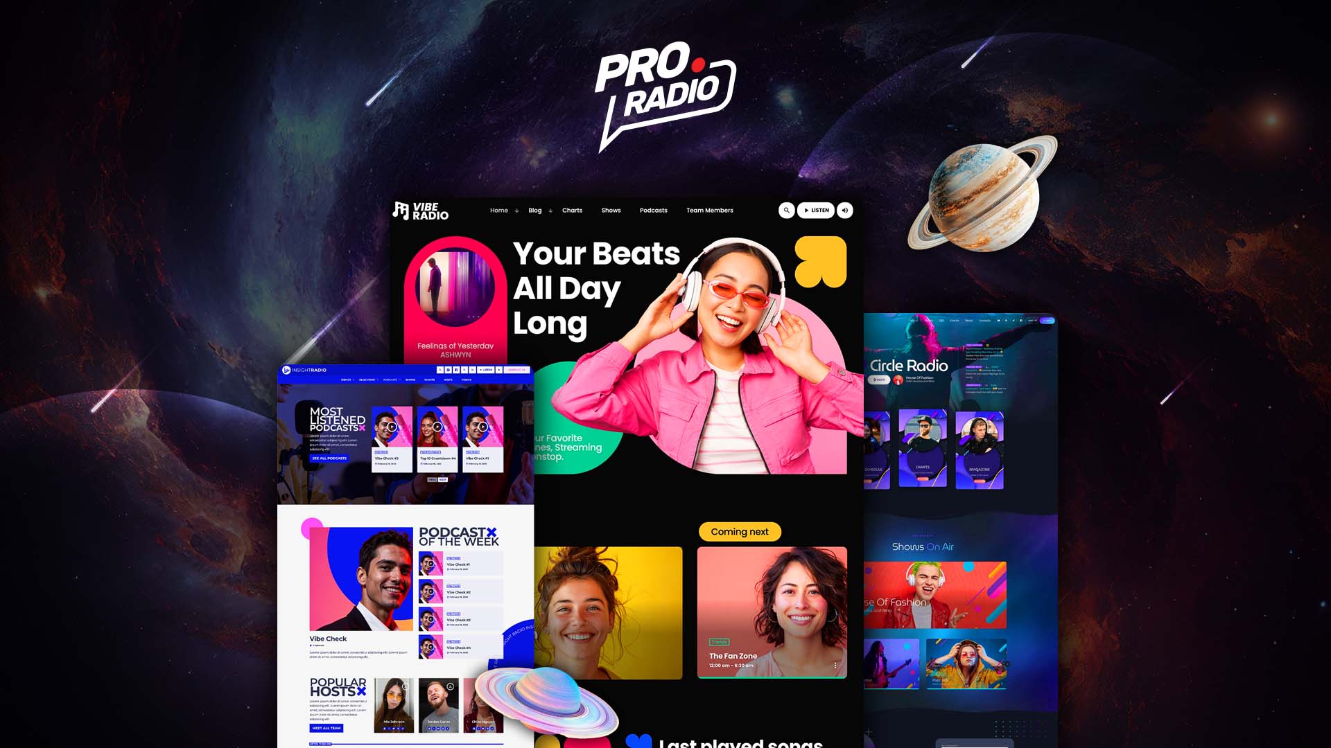 - Pro Radio Plus — everything in one plan: theme, player, shows, podcasts, templates, and all premium add-ons