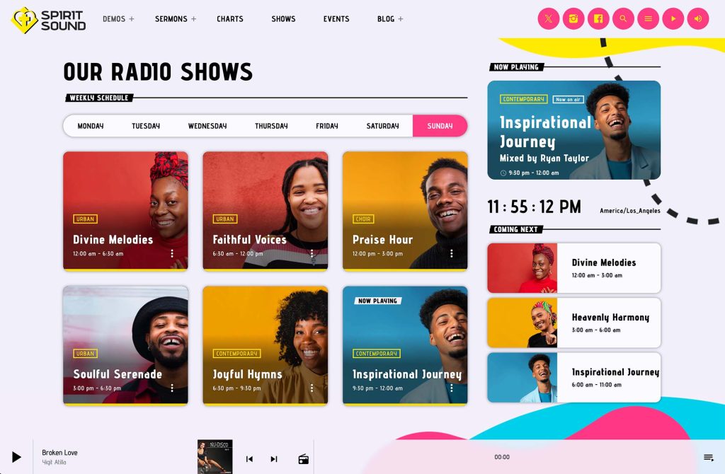 Spirit Sound doesn’t stop at a beautiful homepage. It’s a complete solution, with dedicated pages crafted to meet all the needs of a modern Gospel station: