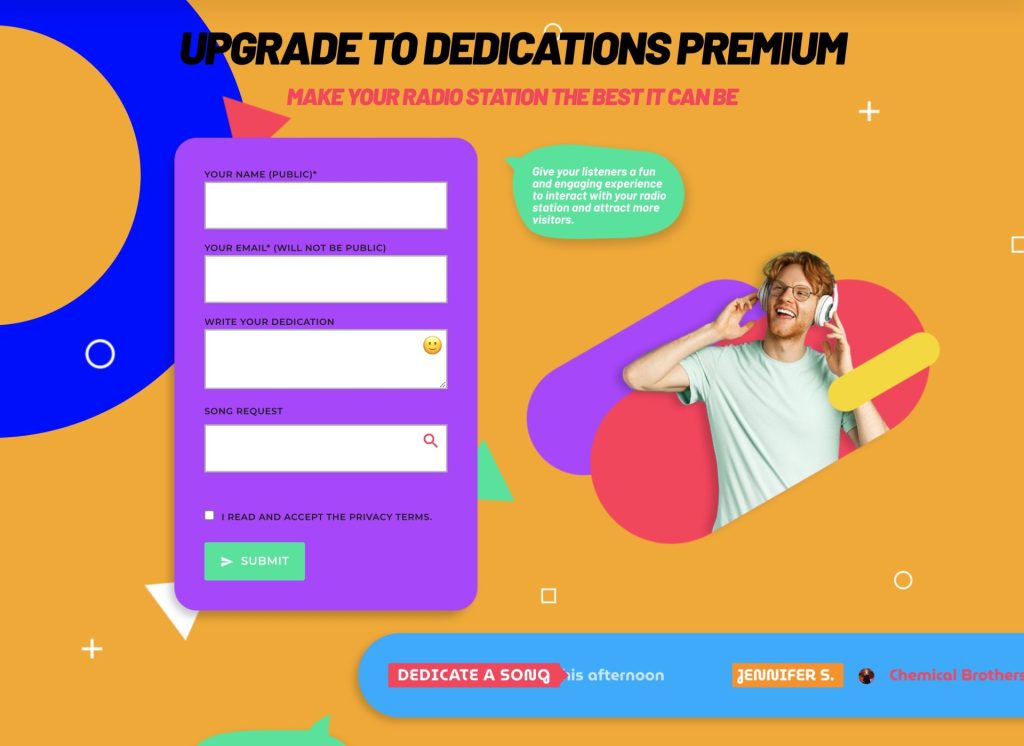 Easily display a dedications form in your radio station website