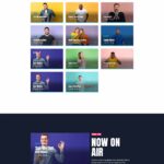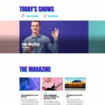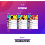 The homepage template 5 has a different look and feel and is a more sober example of pop radio station homepage.It has a colorful player in the header, the upcoming shows carousel, a weekly schedule and then a current show section, followed by the chart tracklist and an upcoming event countdown.