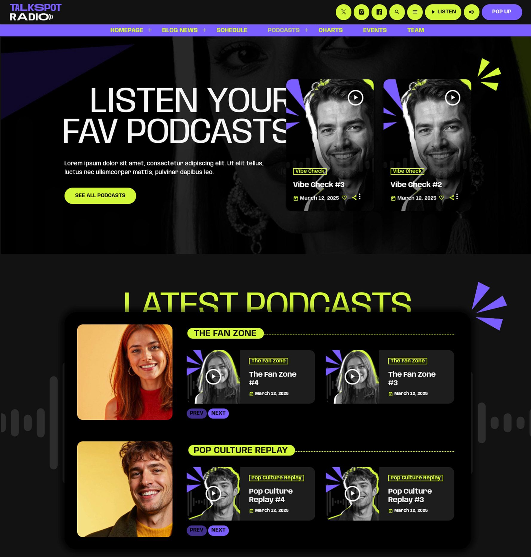 Creating a professional and engaging online presence is essential for any modern radio station. If you’re running a digital station, having a website that not only streams your content but also engages your audience with interactive features is key. This is where the TalkSpot Radio Template, designed for the Pro Radio WordPress Theme, comes in. With a bold design, intuitive layout, and full compatibility with essential streaming and podcasting tools, this radio website builder is a complete solution for broadcasters, DJs, and music networks.