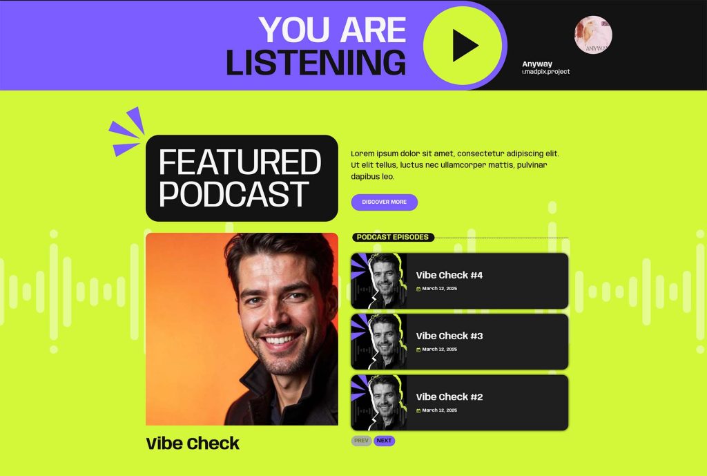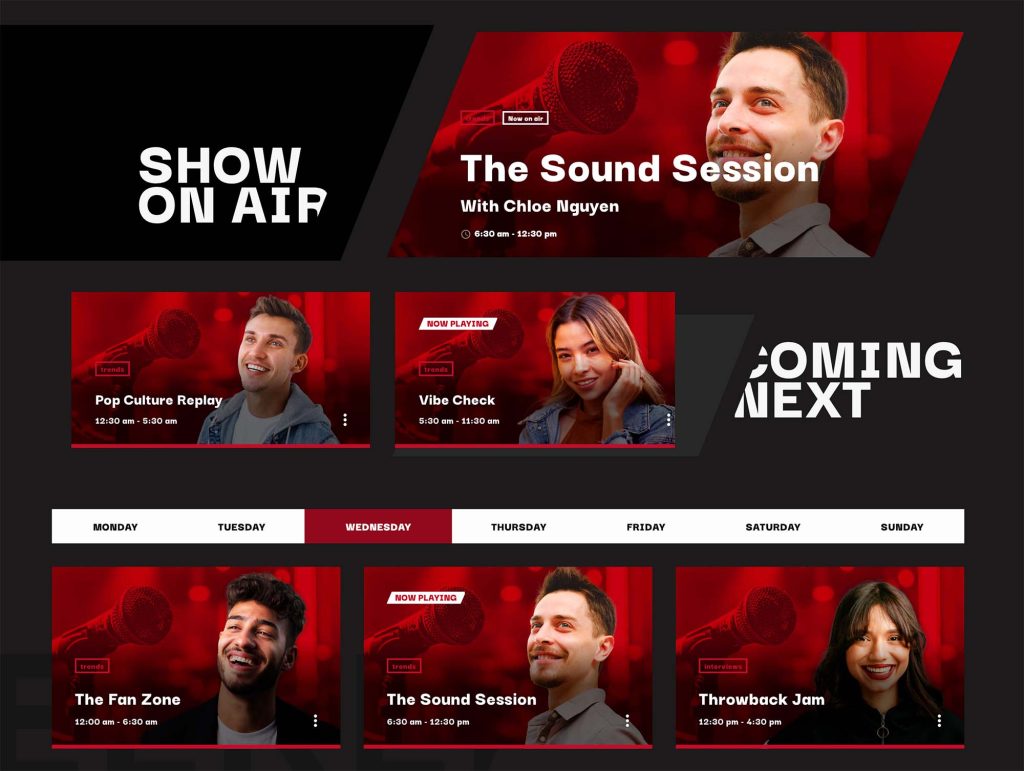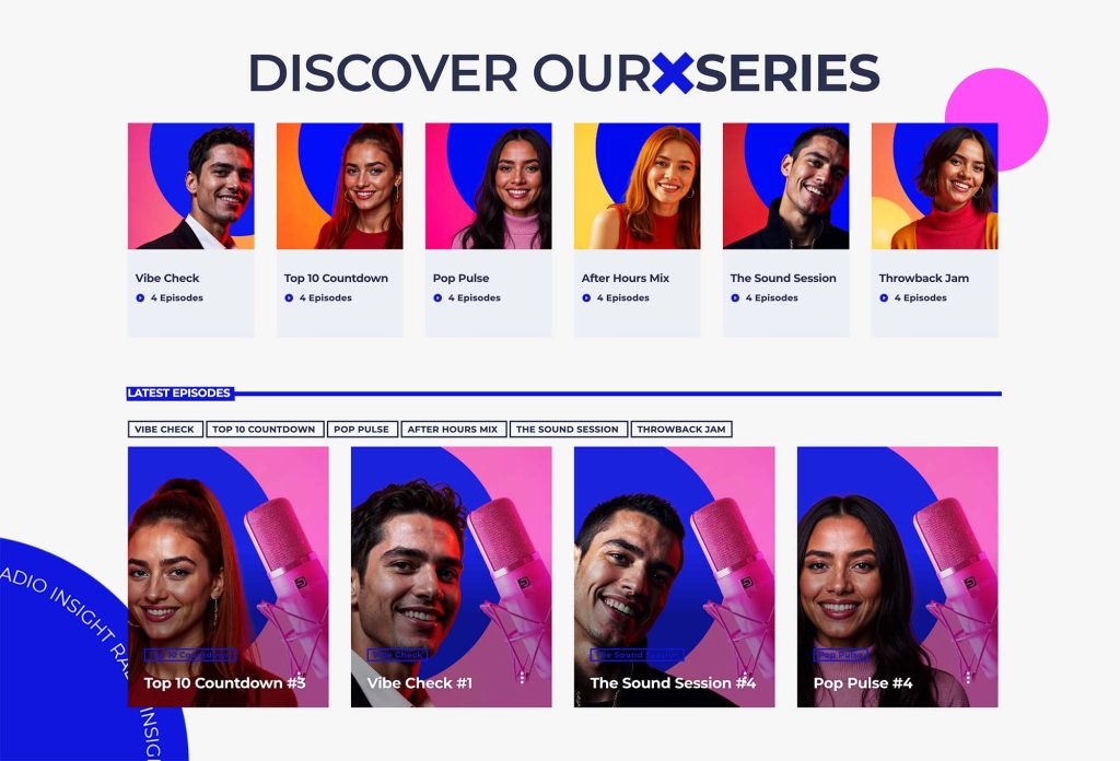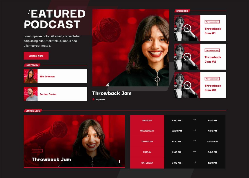 - Multiple Content Layouts: Clean, modern layouts that make it easy to highlight current shows, upcoming broadcasts, and latest podcast drops all on your homepage.