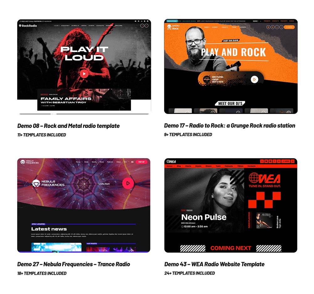 Running a rock radio station? Looking for the perfect radio WordPress theme to build a powerful online presence for your metal, grunge, or alternative station? These bold radio station website templates are built for stations that thrive on heavy riffs, energetic vocals, and loyal fanbases. With Pro Radio WordPress Theme, your station can capture the raw energy of rock while offering your listeners a modern, fully-functional online platform.