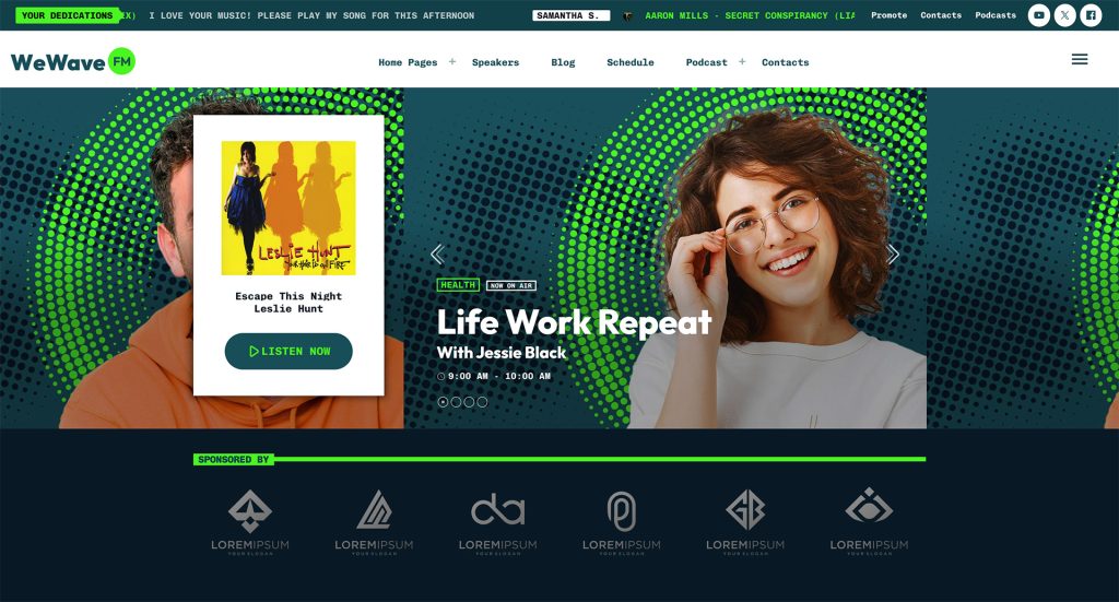 In a world where every radio station is fighting for attention, We Wave FM cuts through the noise — not by being louder, but by being fresher. Designed for creators who want to make a bold first impression, this radio website template, included with Pro Radio WordPress Theme is a celebration of vibrant design, forward-thinking layouts, and features that let your content shine.