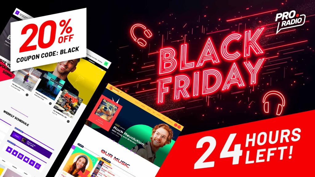 Time is running out! The 20% Black Friday discount on Pro Radio, the ultimate WordPress Theme for radio stations, ends in just 24 hours. This is your final opportunity to snag this powerful tool for creating a stunning, feature-rich radio website at a discounted price. Don’t let the clock run out—act now before the offer
