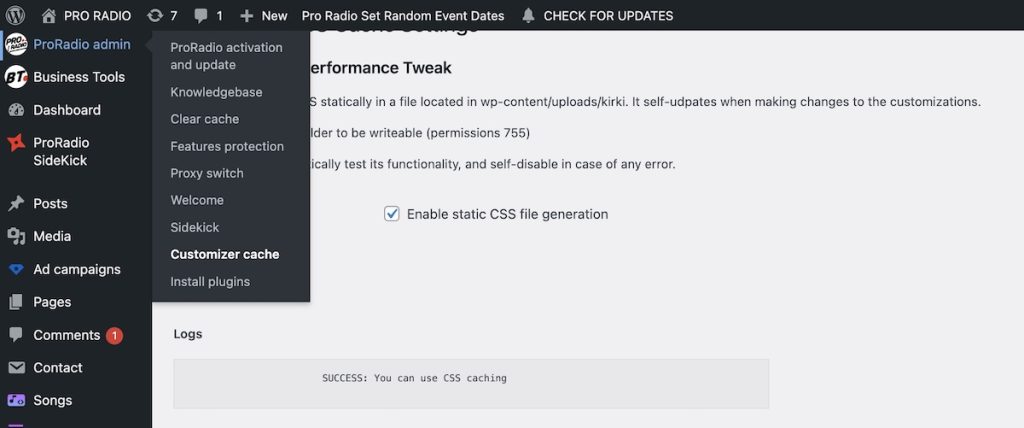 The new version of our Styles software, included in the Pro Radio Core plugin, along with the updated Pro Radio WordPress Theme, introduces a sleek new feature that stores a static CSS file containing all the necessary styles. Previously, these styles were generated dynamically each time a page loaded.