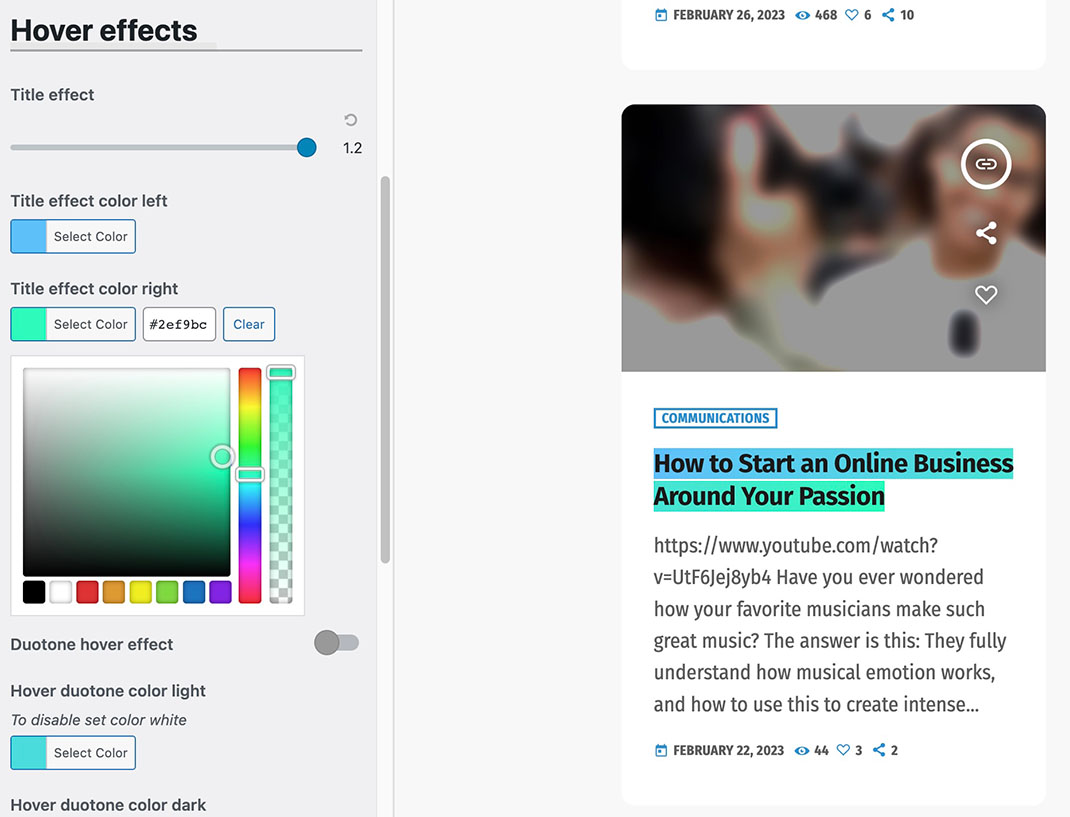 - The heading “hover” effect can now be customized by setting a custom height and colors and can be disabled.