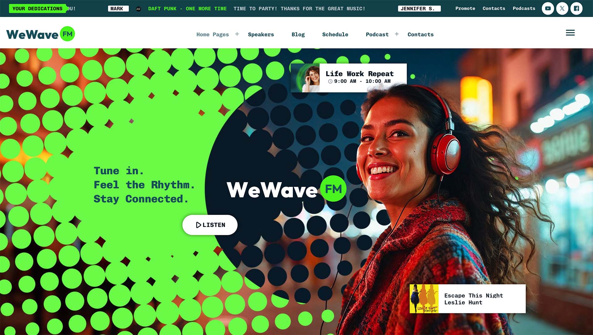 Designed with vibrant visuals, fast loading, and immersive user experience in mind, WeWave FM is the perfect starting point for any radio station looking to launch fast with a stunning look.