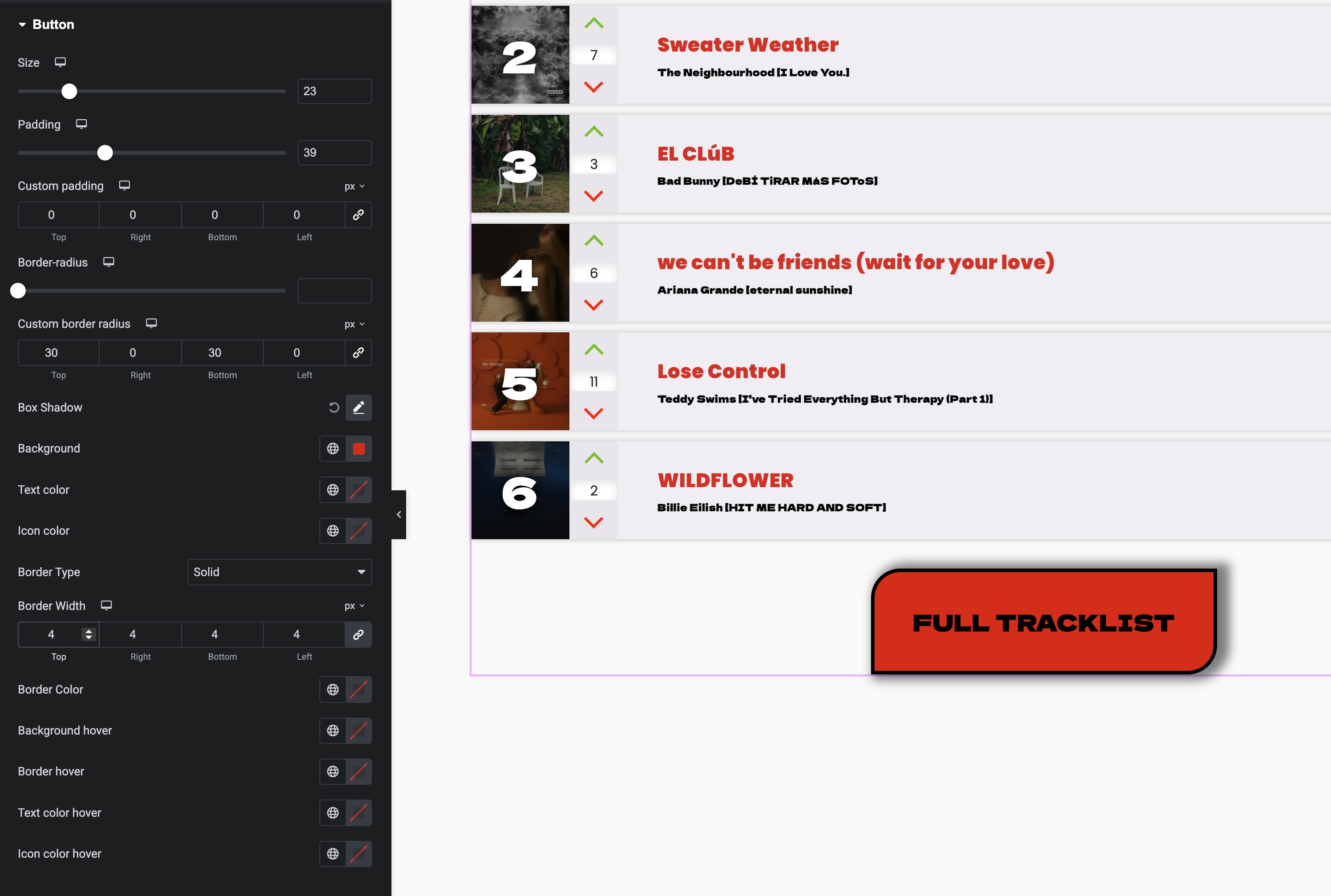 Now the Full Tracklist button of the chart tracklist can be completely customized, change colors, font, size, padding, borders and more.