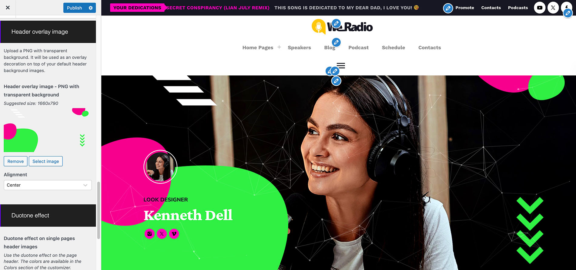 Your radio deserves personality. With the new Header Overlay feature, you can upload transparent PNG decorations that sit right on top of your header images. It’s a simple way to give your brand a unique, professional look that listeners will remember.