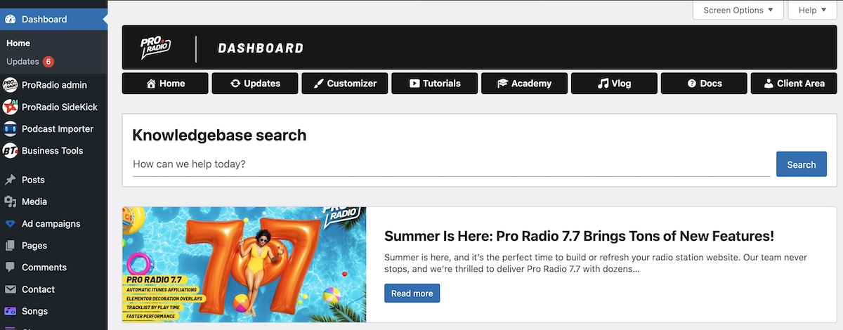 The new Pro Radio dashboard puts everything you need in one place. No more hunting through menus – tutorials, documentation, and your homepage are now just one click away. This means less time figuring things out and more time focusing on your audience.
