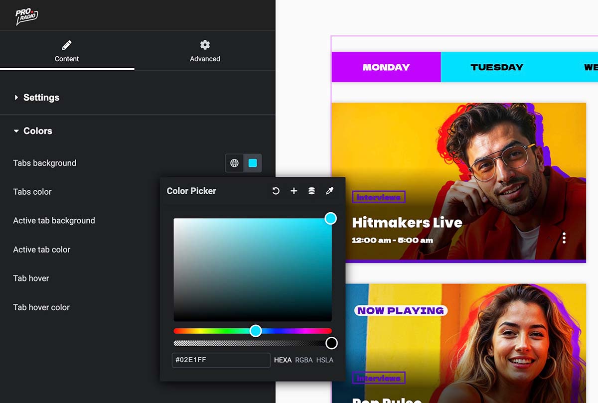 Want a new look without starting over? The Elementor Template Library is here to help. Pro Radio 8.0 introduces a growing collection of stunning templates – including free ones available for all users. Thanks to the new Overlay system, you can completely refresh your design in minutes, without touching Photoshop or rebuilding your site.
