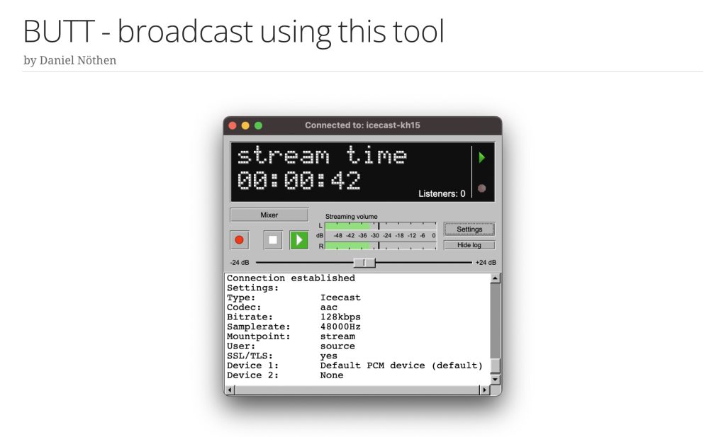 - BUTT (Broadcast Using This Tool): A free and simple option for broadcasting any audio source.