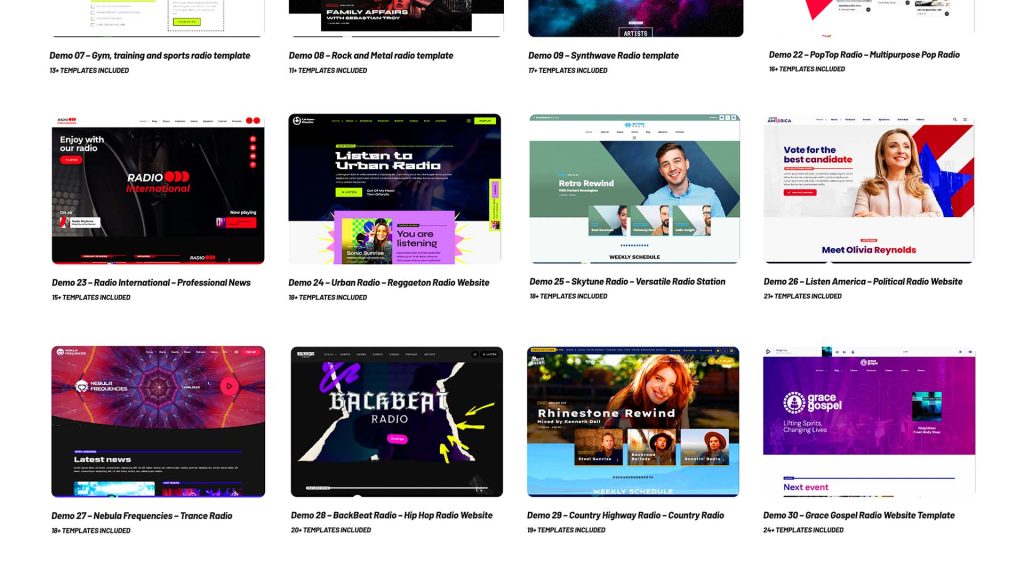 Targeted Appeal: With Pro Radio’s diverse theme options and tons of prebuilt radio websites, tailor your website’s look and feel to perfectly resonate with your target audience. Whether you’re aiming for a sleek, modern vibe for a young urban demographic or a warm, nostalgic aesthetic for a classic rock station, Pro Radio has the perfect template to match your vision.