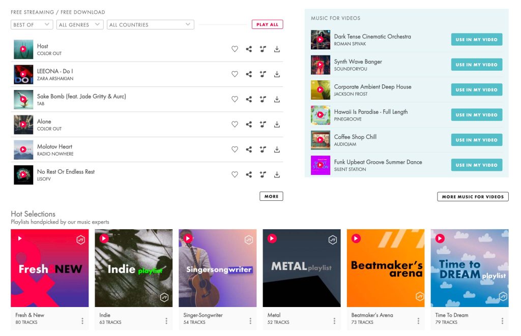 • Jamendo.com: Explore an independent artist community where you can listen and download music for free. They also offer special deals for radio broadcasting.
