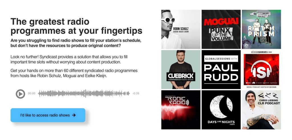 Syndication, where DJs and speakers offer their pre-produced shows for broadcast, is a powerful tool for radio stations of all sizes. Imagine DJs paying to reach your audience while you get free content! Skip the networking hustle and subscribe to platforms like: